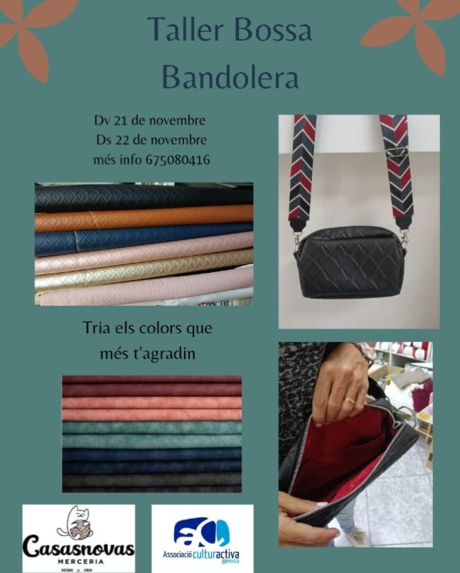 Precioso taller donde vamos a crear un bolso tipo bandolera utilizando tela de polipiel sintética, forro interior y asa de colores que combina con todo el conjunto y le da un aire nuevo.