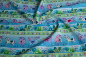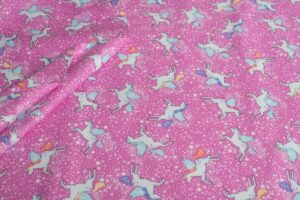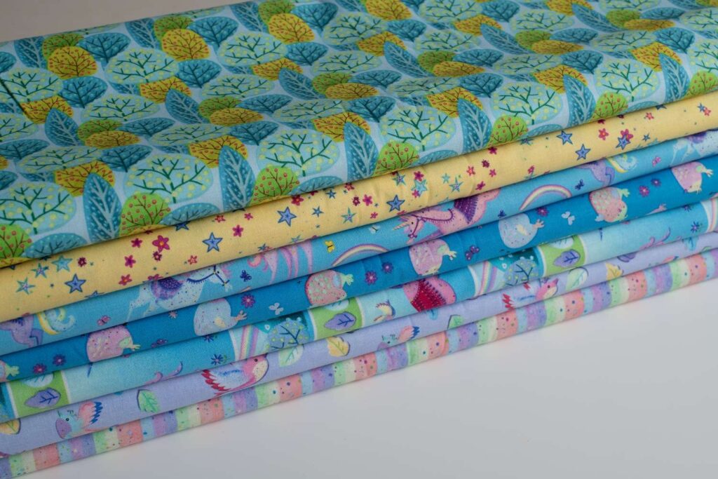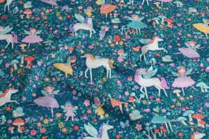 Preciosa colección de telas especiales infantiles. Presenta una colección mágica inspirada en el mundo de las hadas, los unicornios, las estrellas brillantes..La paleta de colores es una mezcla de tonos pastel, que van desde rosas suaves, azules y púrpuras lo que le da a las telas una sensación ligera y agradable, perfecta para colchas infantiles, decoración caprichosa y proyectos divertidos. Si quiere unas telas que aporten un toque de fantasía e imaginación estas son las «Fairy Dust», añade además encanto a qualquier proyecto de costura.