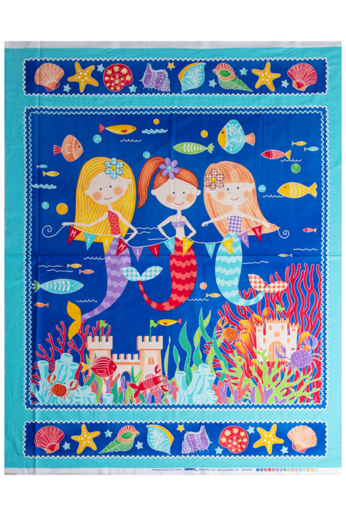 Son telas muy bonitas para habitaciones infantiles. El panel de sirenas se puede utilizar para un quilt de pared acolchado con buata, para colcha de cama y cojines a juego.. También para cualquier creación que usted pueda imaginar.