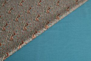 Tiene un ancho de 1,10cms y un colorido que va desde crudos, beig, marrones, azules, grises, ocres.. por ello puedes hacer una combinación de colores muy atractivos.