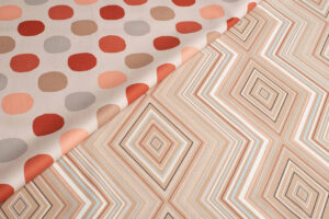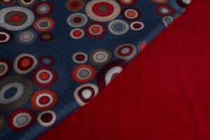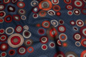 Los tonos de esta colección son granates, beig, grises y azules donde destaca el panel de círculos súper bonito.