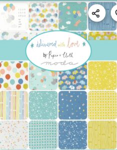 La colección Rouenneries Trois y la Seeglass Summer vienen presentadas en packs de unas 40 ó 42 telas de 25 x 25 cms ( 10″x10″) de todas las telas que componen cada colección. Lo bueno es que no tienes que preocuparte de como combinar las telas y colores ya que vienen muy bién combinadas. La colección Delivered with love es una colección infantil con un formato de Jerry Roll de telas de 6´50 X 1,10 cms preciosa para habitación infantil.
