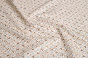 Con motivos diferentes combina topos de colores tierra, azules con fondo blanco, cenefas originales, unas flores grandes pero sutiles y unos motivos pequeños que todo combina perfectamente entre si.