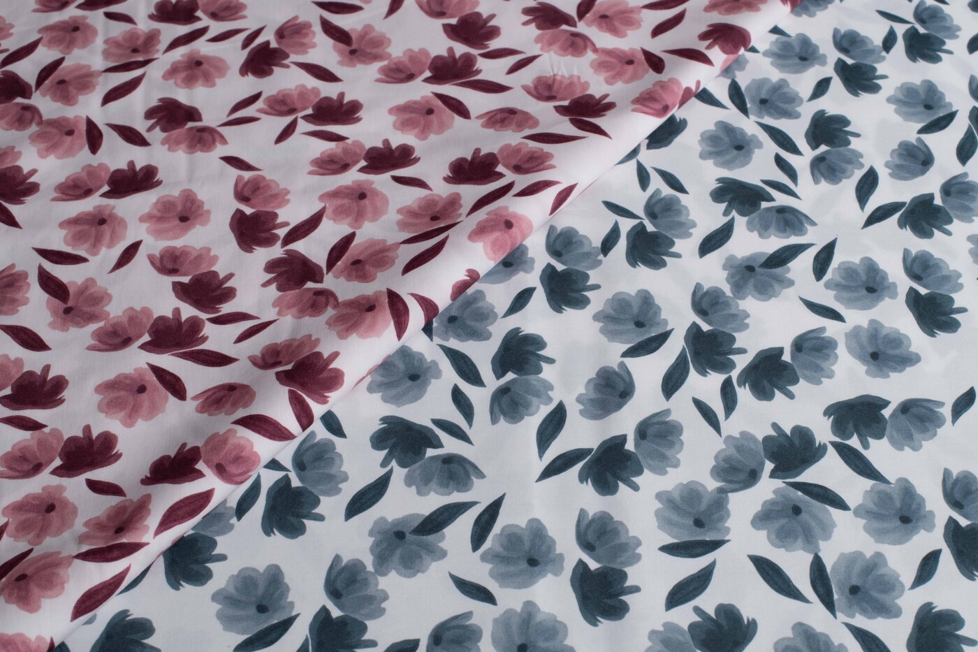 Colección de telas de algodón súper bonitas en tonos granate, y rosas con tonos suaves y delicados con tonos pastel y románticos. Con una textura parecida al lino es una colección preciosa para todo tipo de idea que quiera crear para proyectos. Con un tema floral como principal estética. Las telas son de alta calidad, para cojines, edredones y también bolsas y accesorios.