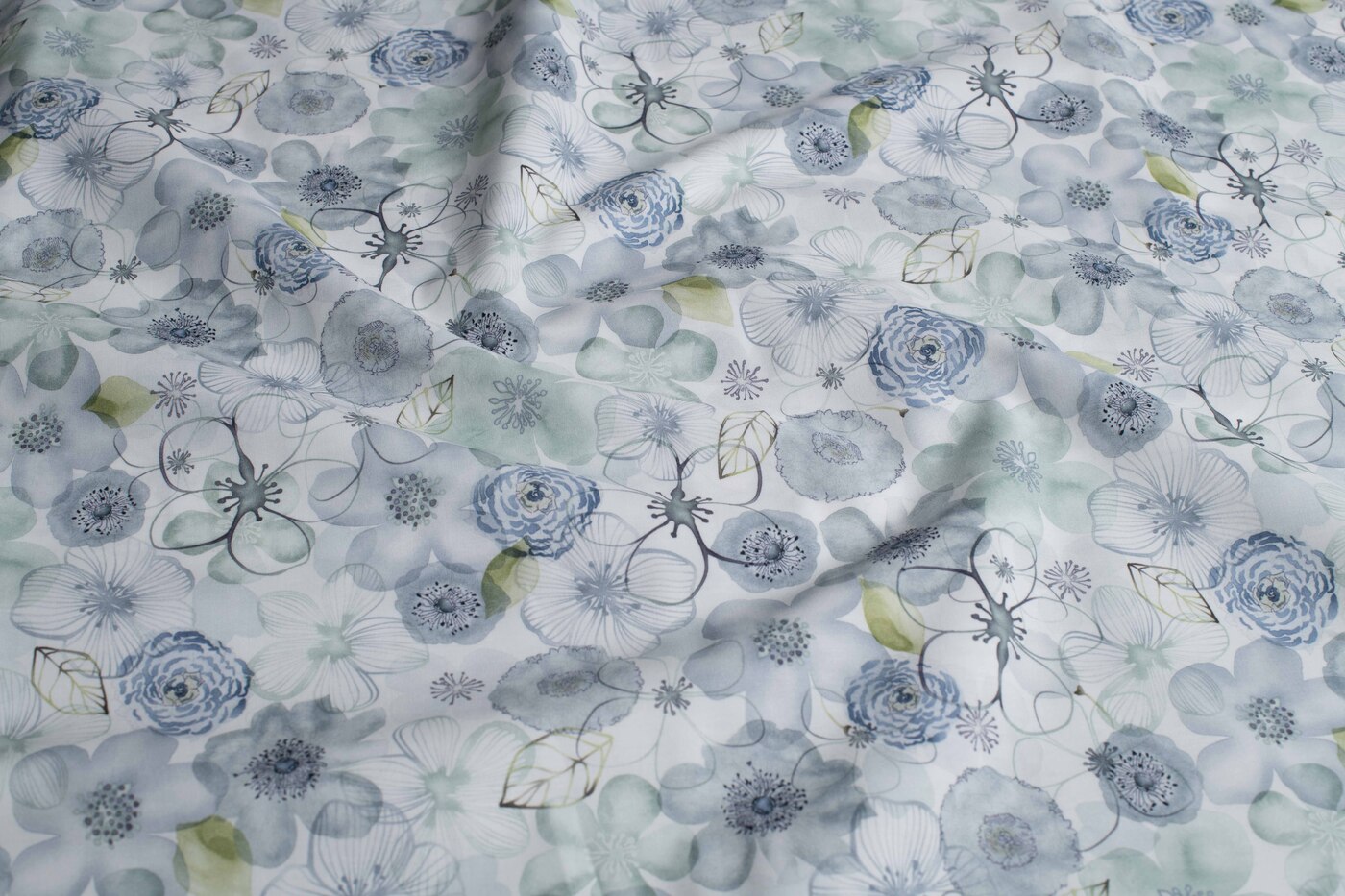 La colección de telas de algodón súper bonitas en tonos suaves azules y verdes empolvados y diferentes motivos pequeños.